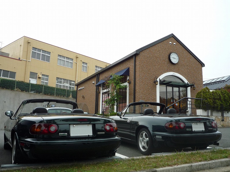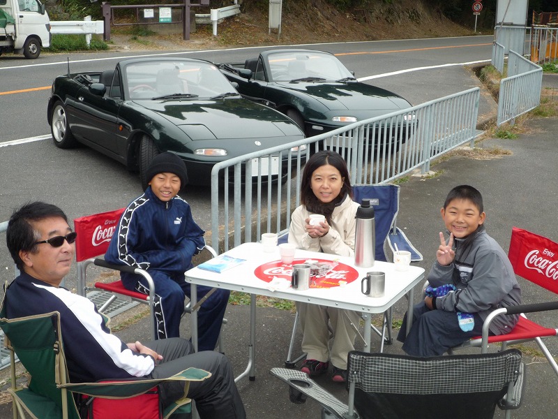 食事とコーヒーで、ロードスターも家族も楽しもうという